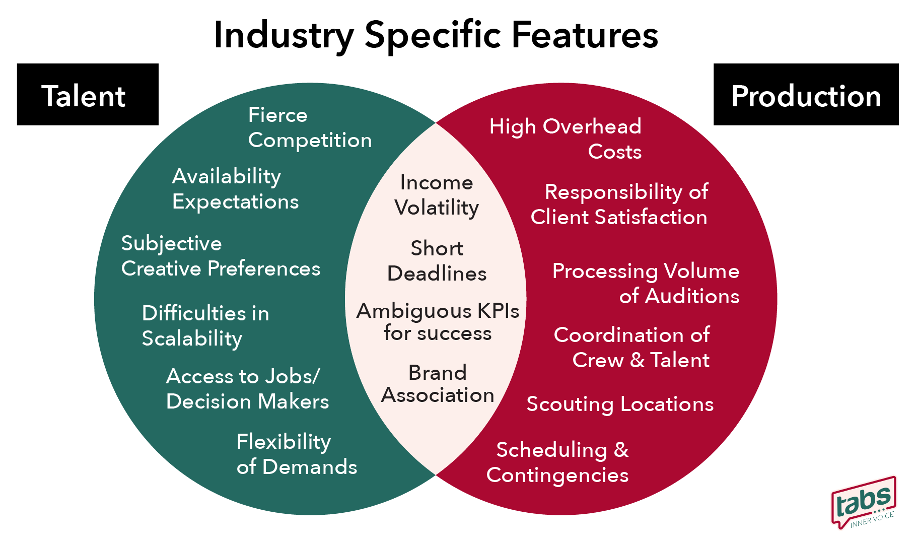 Here is a infographic with many, but not all, features for talent listing things that may not necessarily apply to the production side, and others that we both face giving each other some common ground to build on.